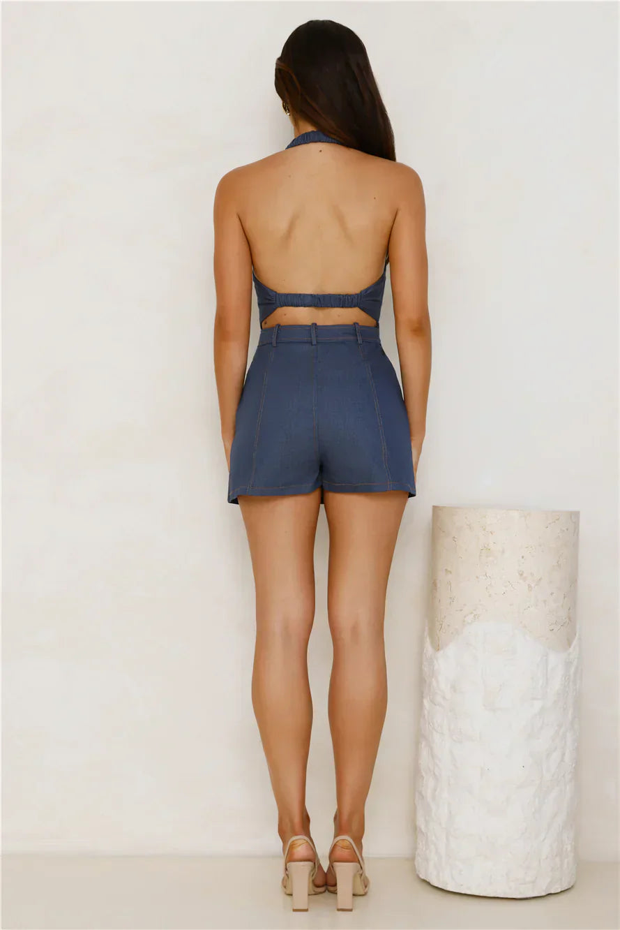 Channel your fun side with the Chase Happiness Halter Playsuit. Featuring a button front, side pockets and a gorgeous elastic back. Style with heels for a 'fit you'll steal attention in.