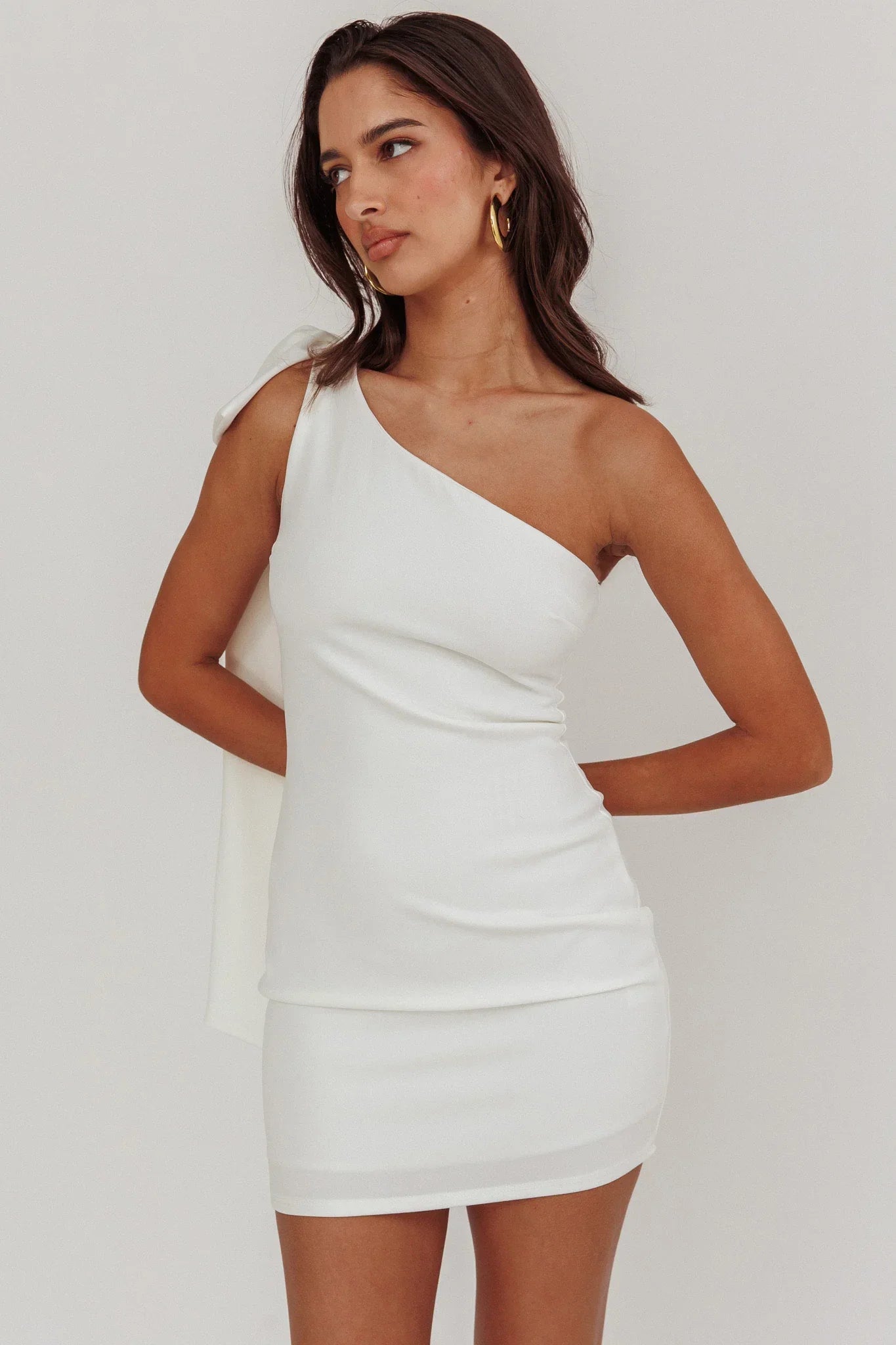 Make your grand entrance in our eye-catching Earned It mini dress. We are in love with oversized shoulder bow and asymmetric neckline. Perfect for a party or night out with the girls! Team it with strappy heels for a look that won't be forgotten.