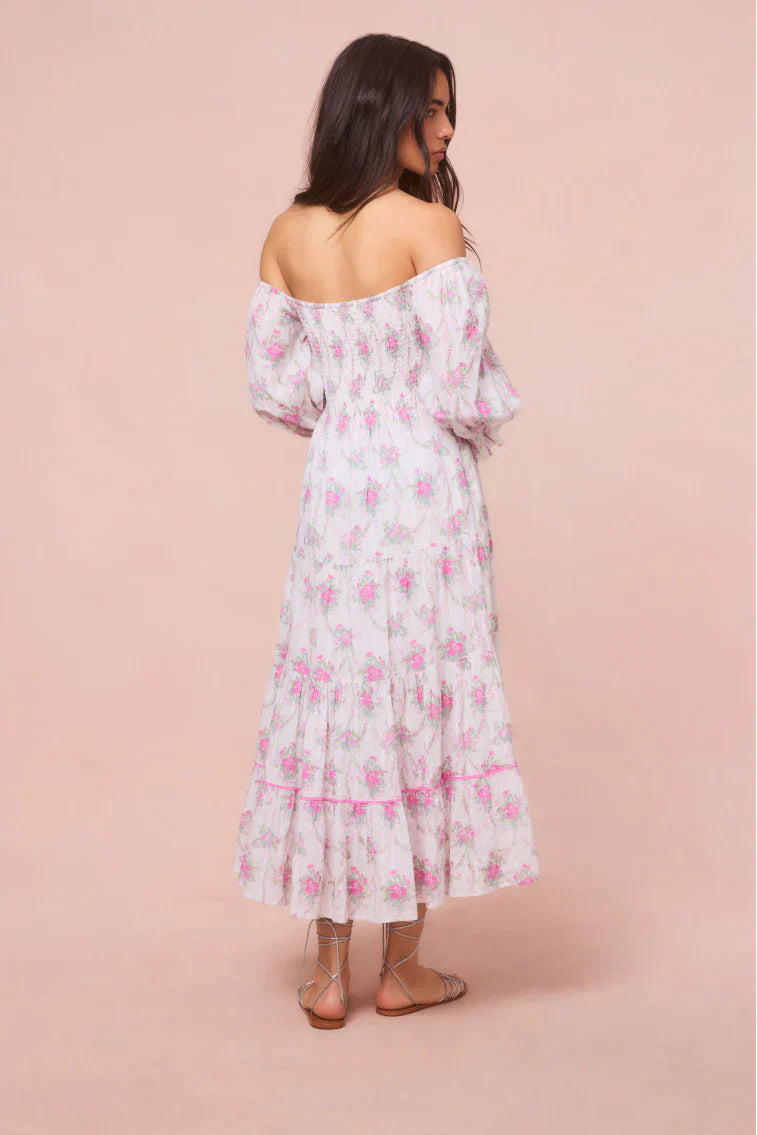 One of our original, beloved dresses returns with a pretty new print for the season. The Rigby Dress arrives with a flirty new floral all over. This sweepy midi dress features a dobby striped fabric for added texture, elastication at the sleeves so they can be worn on or off the shoulder, and a ruffle skirt that releases into shirred tiers.